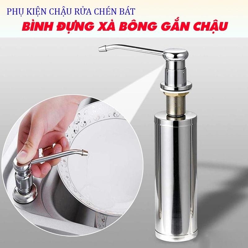 Bình Hút Nước Rửa Chén Inox 330ML Xoay 360 Gắn Âm Chậu Tiện Lợi - Kiểu nhấn, dễ lắp đặt, dễ thay nước rửa bát