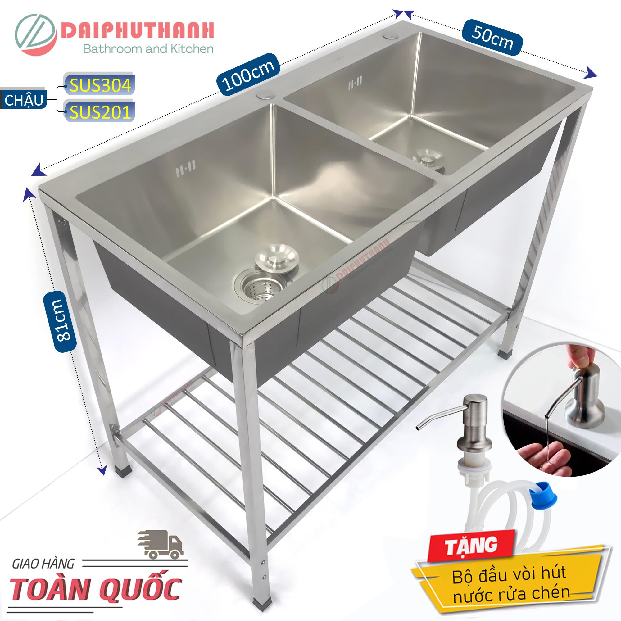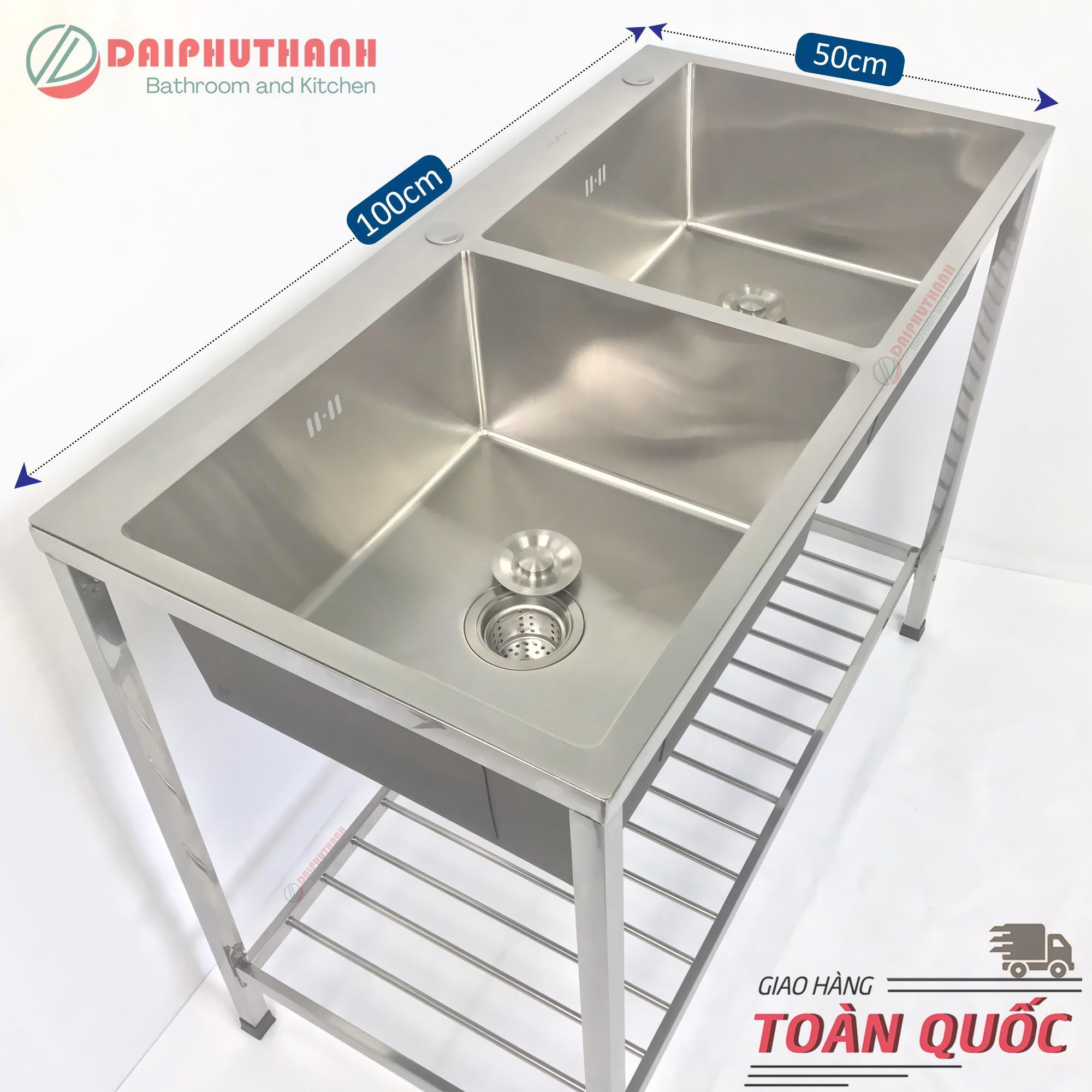 Món 1: Chậu rửa bát 2 hộc cỡ lớn, kích thước 100x50cm, 2 lựa chọn chậu Inox 201 hoặc inox 304: