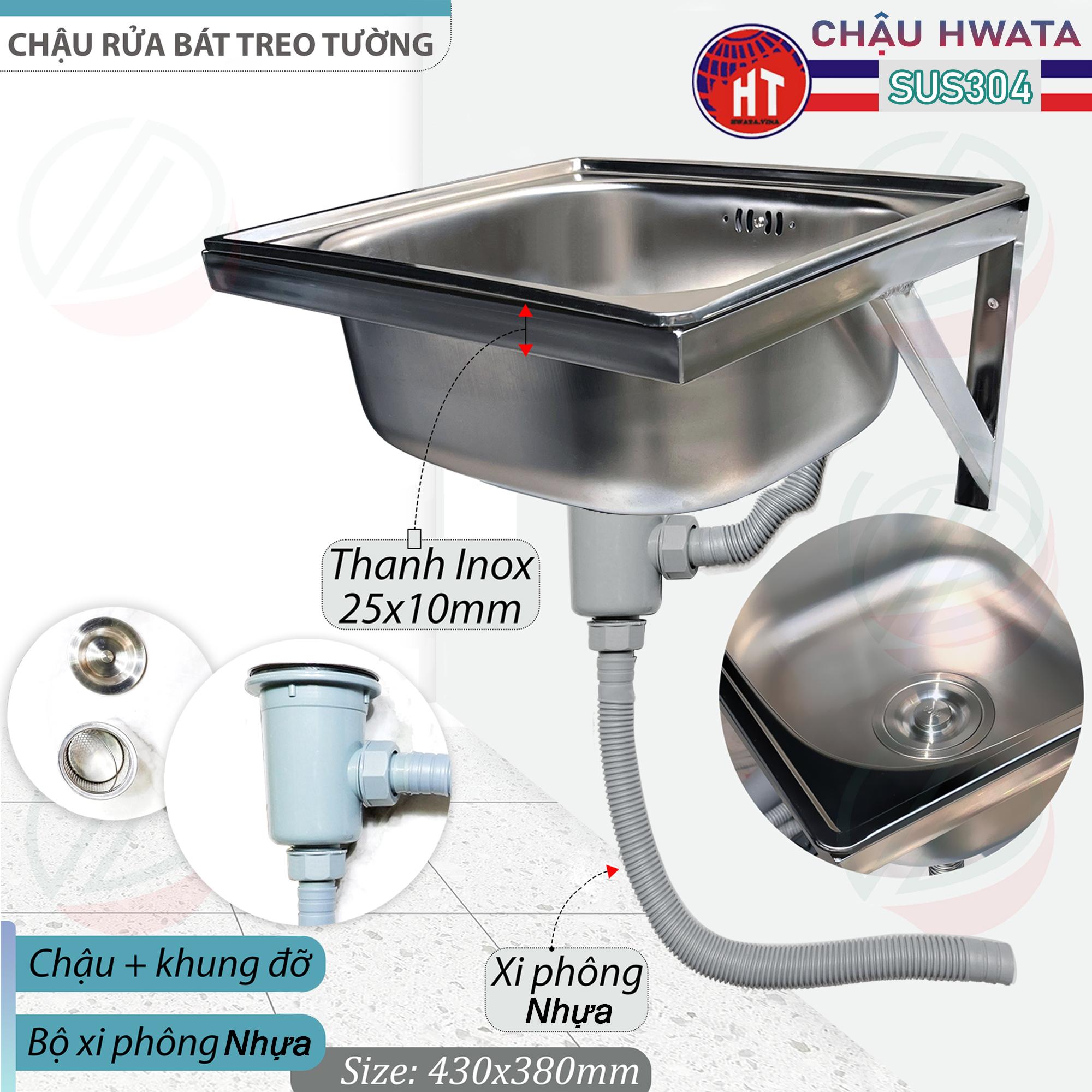 Bộ Chậu Rửa Chén Bát SUS304 HWATA Treo Tường, gồm các món chính sau: