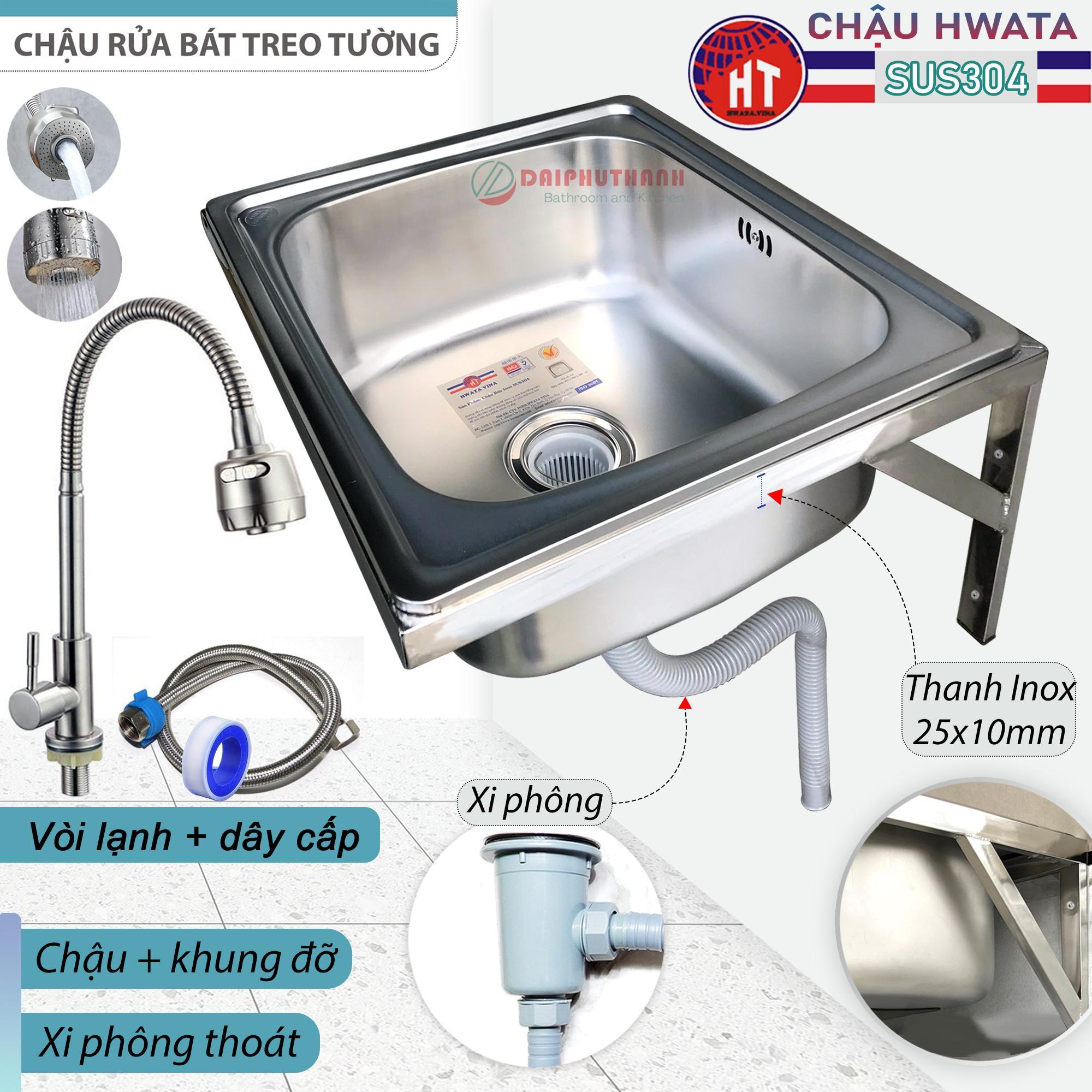 Bộ Chậu Rửa Chén Bát SUS304 HWATA Treo Tường, gồm các món chính sau: