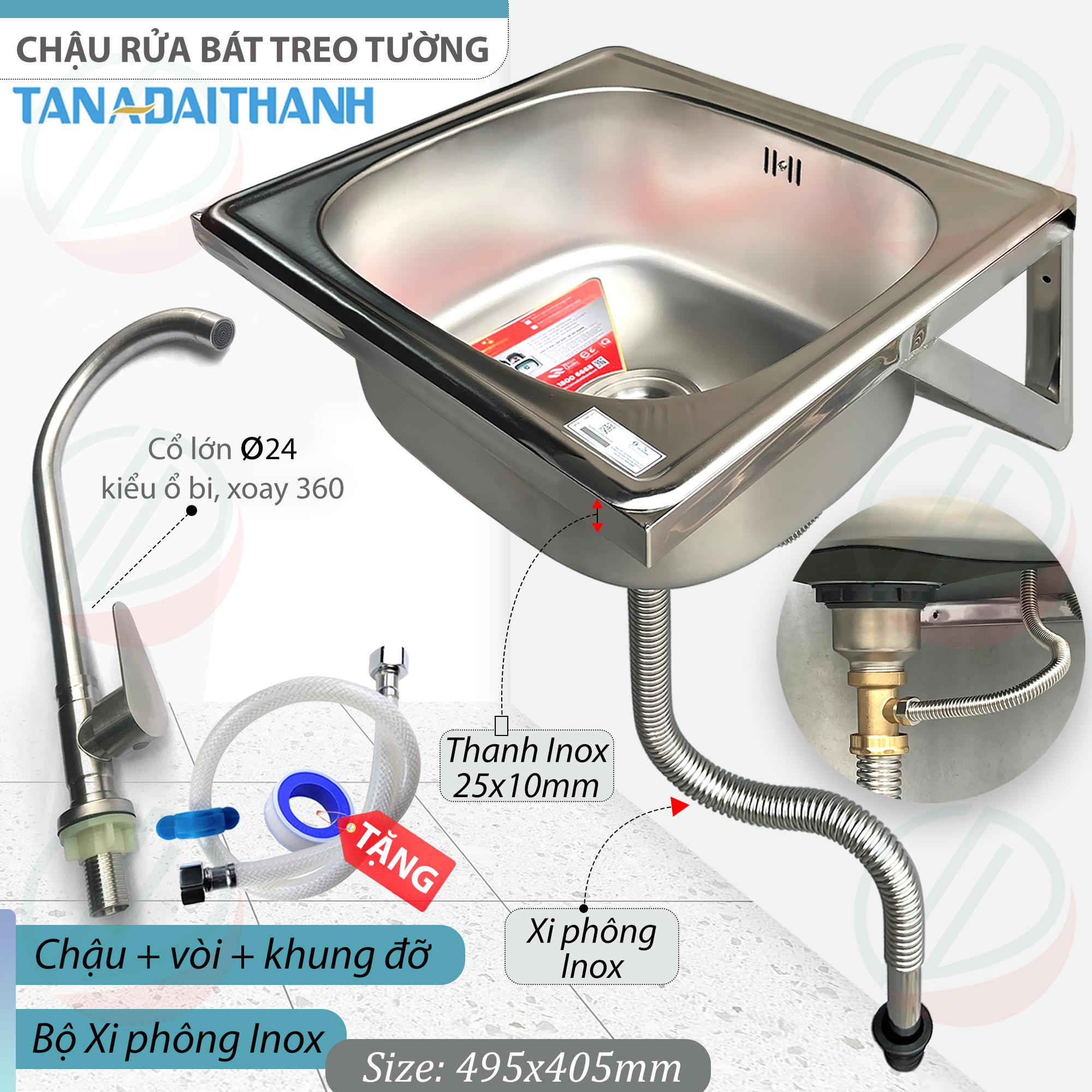 Bộ Chậu Rửa Chén Bát Treo Tường Inox TÂN Á ĐẠI THÀNH, gồm các món chính sau: