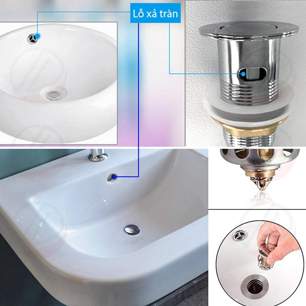 - Kiểu xả nhấn, dùng cho loại lavabo có lỗ chống xả tràn (xem thêm hình ảnh)