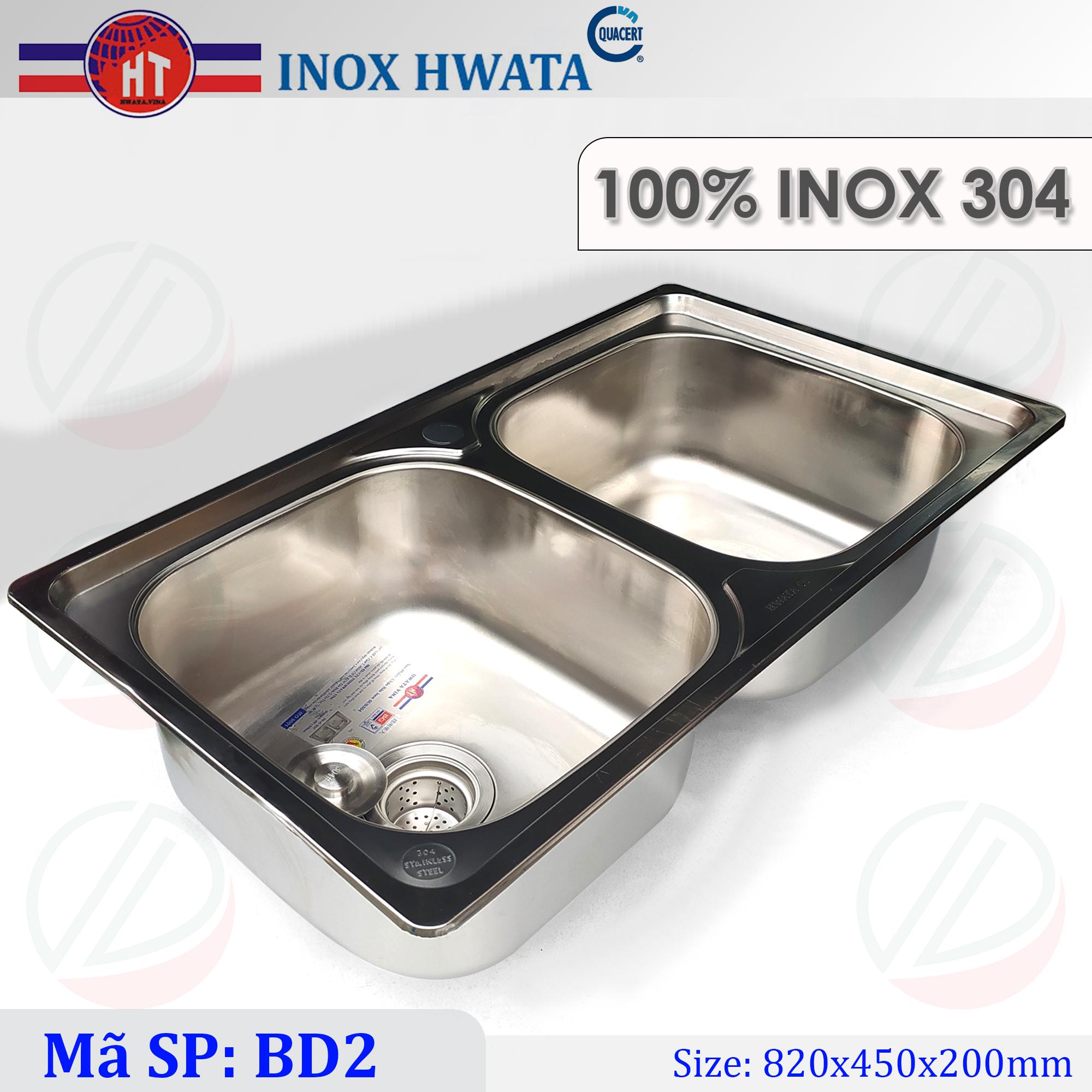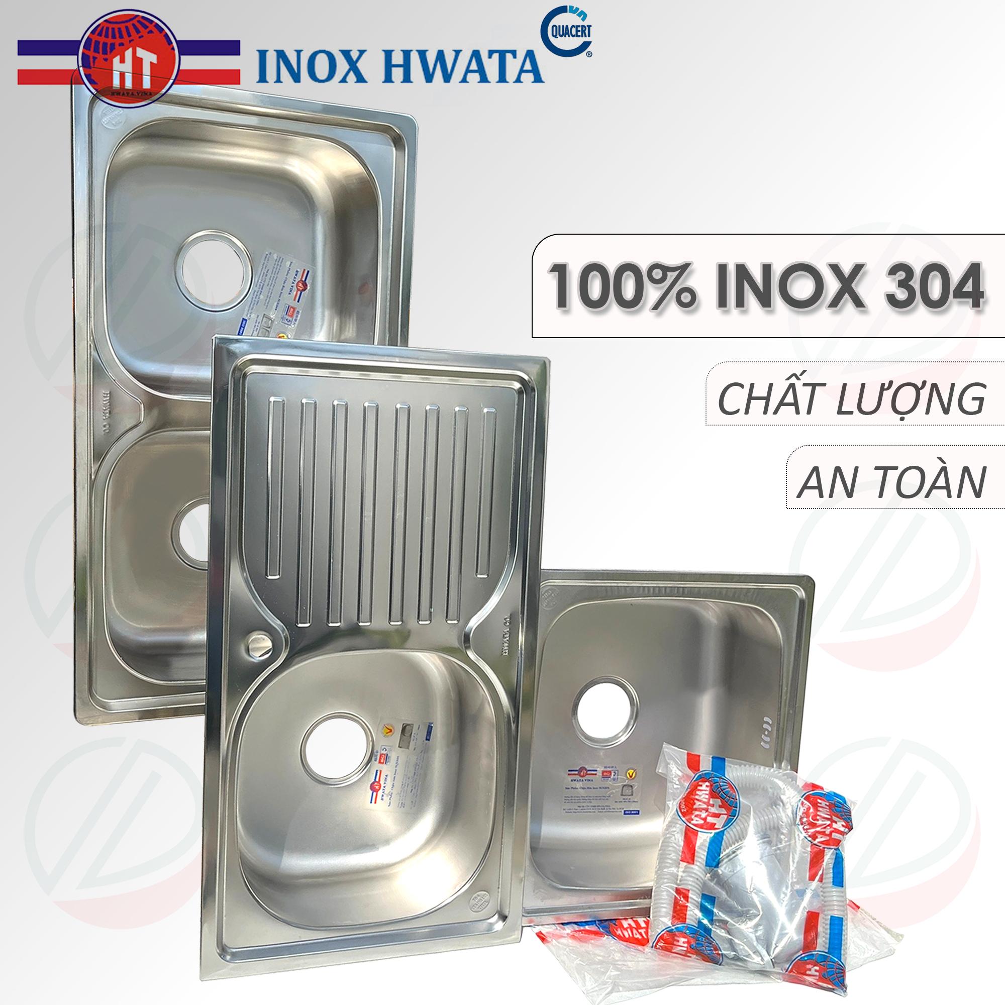 Chậu Rửa Chén Bát Chính Hãng HWATA INOX 304 - Loại 1 hộc 1 cánh, 2 hộc, gồm 2 lựa chọn kích thước với 2 mã chậu sau: