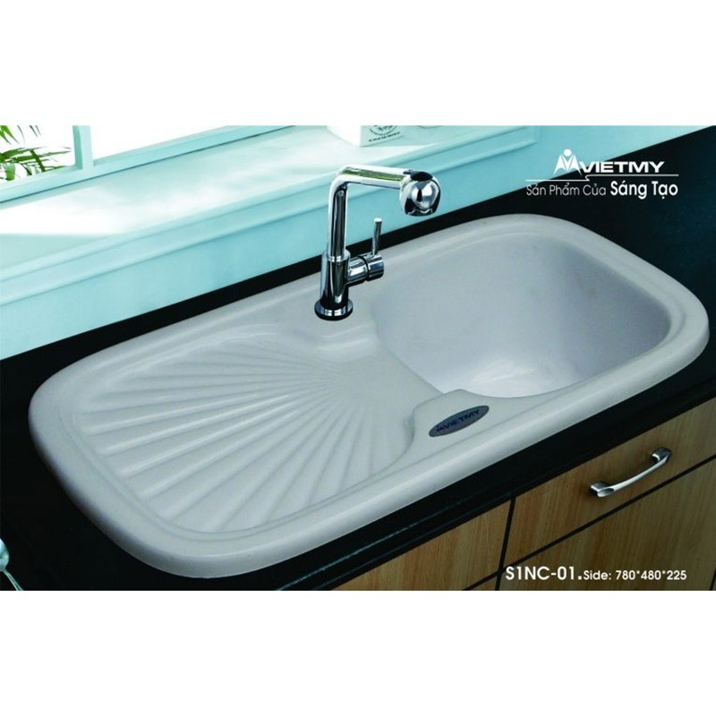 Chậu rửa bát Việt Mỹ S1NC-01 đá nhân tạo:-Loại chậu: 1 hộc 1 cánh-Kích thước dài x rộng x sâu (mm): 780 x 480 x 225-Màu sắc: có thể lựa chọn màu trắng, muối tiêu-Chất liệu: đá nhân tạo-Nhà sản xuất: Việt Mỹ-Nguồn gốc: Việt Nam-Bảo hành: 03 năm-Hệ thống xả nước đảm bảo việc chống tràn, chống ngưng tụ, rò rỉ nước-Hố rửa sâu, góc lượn R15 giúp bạn dễ dàng vệ sinh khi sử dụng, tiết kiệm được nước khi tẩy rửa dụng cụ-Rổ lọc rác bằng inox tiện lợi kết hợp với bộ xả thiết kế thông minh với lớp lọc rác chống mùi và chống tắc hiệu quả.#chauruachenbat #chauruavietmy #chauruadanhantao #bonruadanhantao #chaurua #bonrua