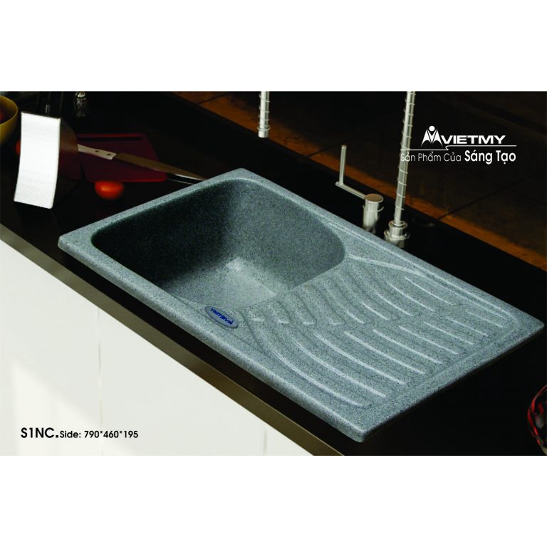 Chậu rửa bát Việt Mỹ S1NC đá nhân tạo:-Loại chậu: 1 hộc 1 cánh-Kích thước dài x rộng x sâu (mm): 790 x 460 x 195-Màu sắc: có thể lựa chọn màu đen, trắng, muối tiêu-Chất liệu: đá nhân tạo-Nhà sản xuất: Việt Mỹ-Nguồn gốc: Việt Nam-Bảo hành: 03 năm-Hệ thống xả nước đảm bảo việc chống tràn, chống ngưng tụ, rò rỉ nước-Hố rửa sâu, góc lượn R15 giúp bạn dễ dàng vệ sinh khi sử dụng, tiết kiệm được nước khi tẩy rửa dụng cụ-Rổ lọc rác bằng inox tiện lợi kết hợp với bộ xả thiết kế thông minh với lớp lọc rác chống mùi và chống tắc hiệu quả.