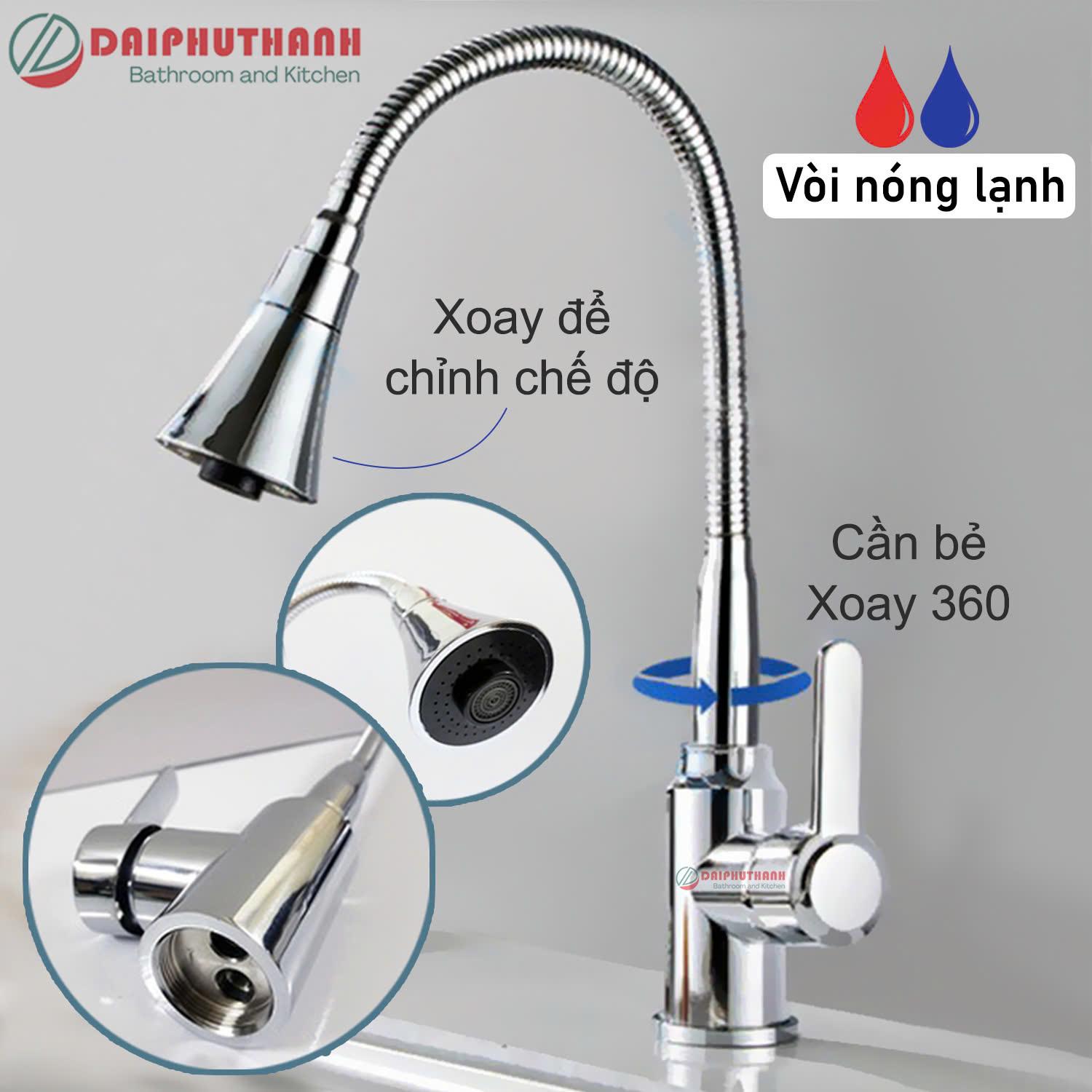 Món 3: Vòi rửa bát inox mạ crome bóng, nóng lạnh, với 2 lựa chọn:
