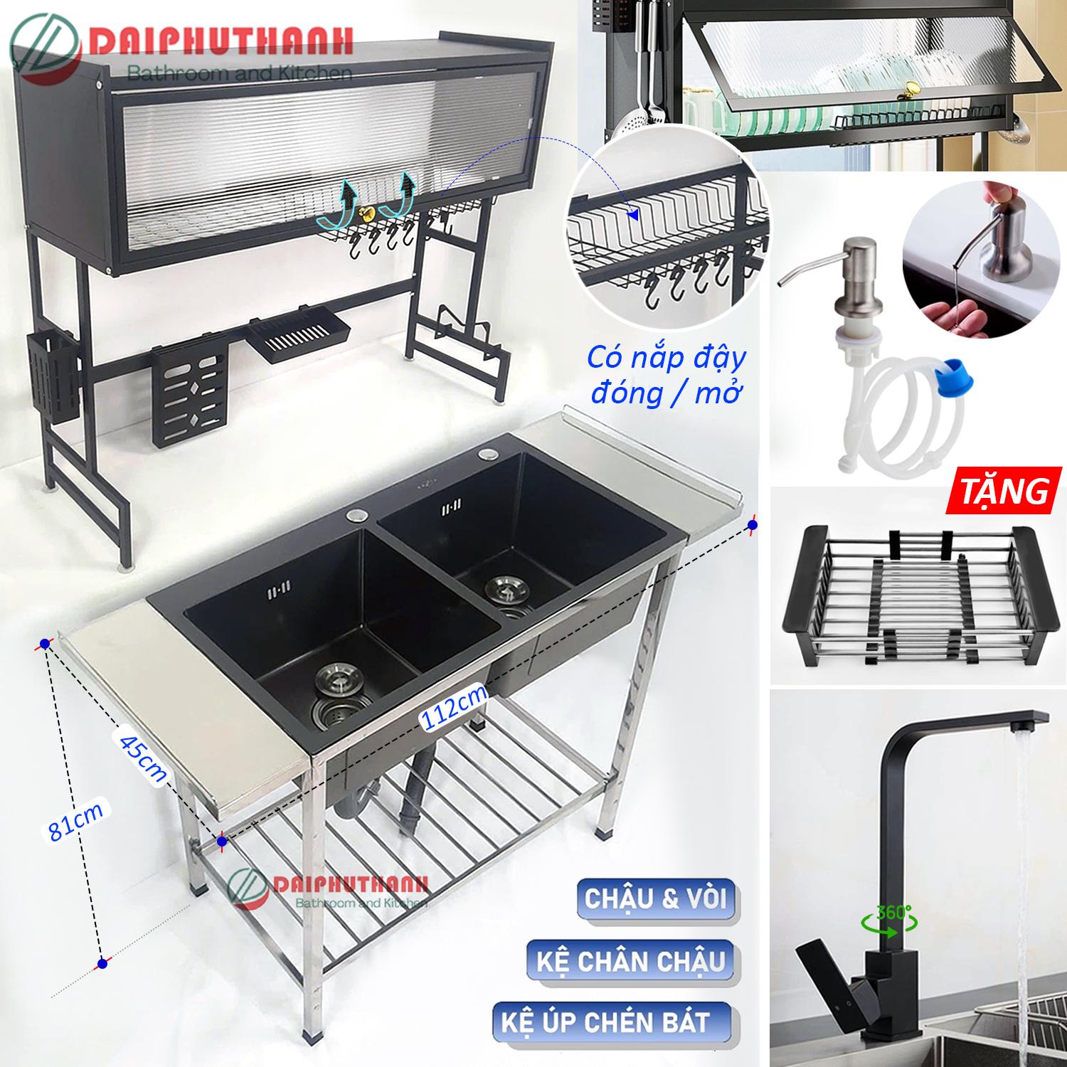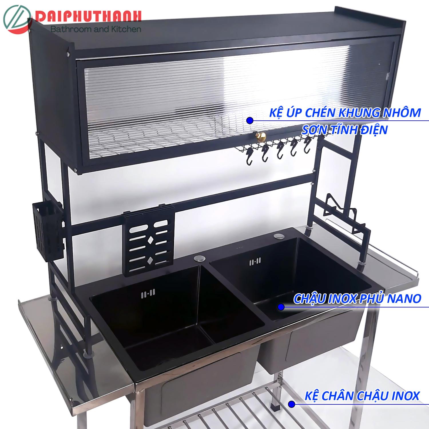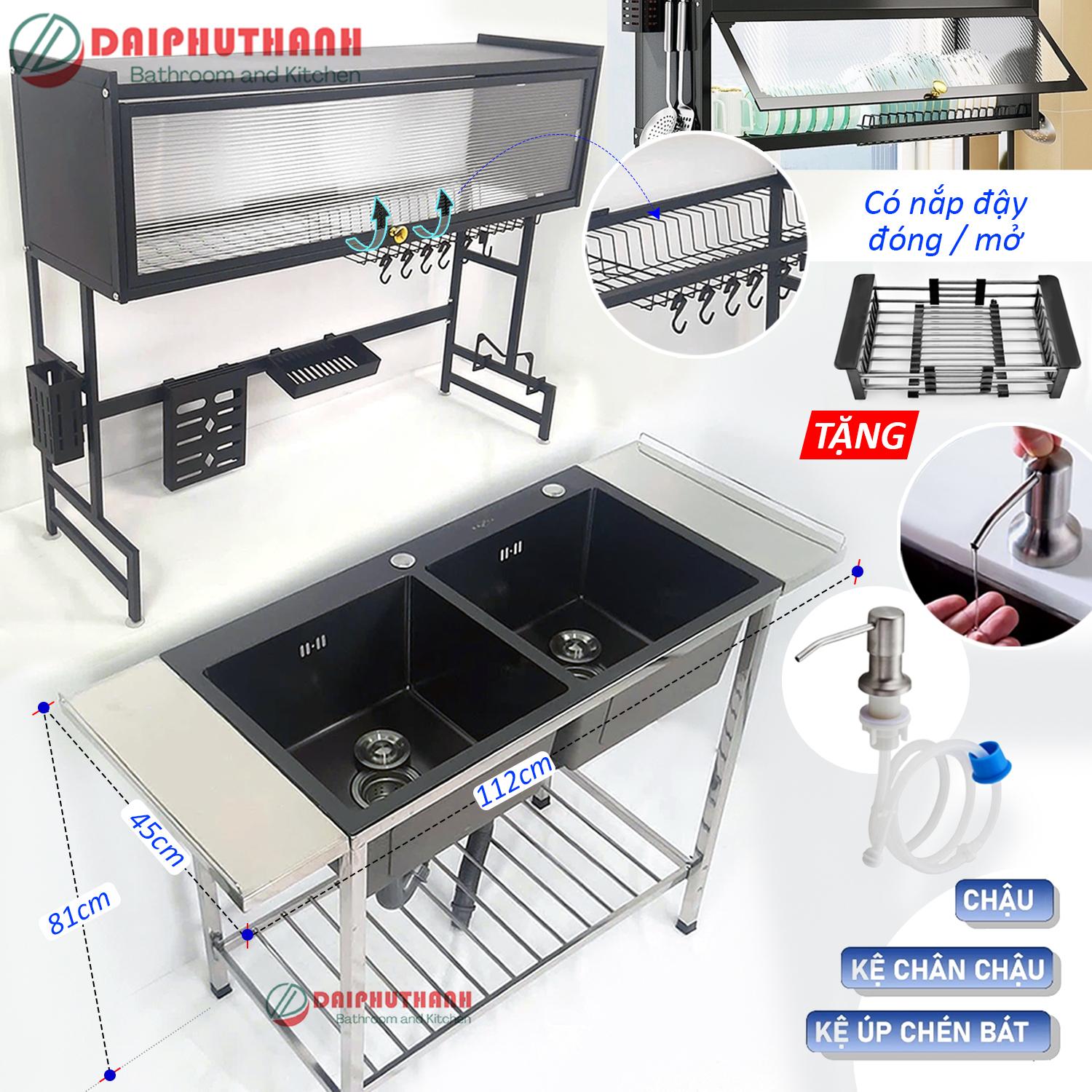 COMBO Chậu Rửa Bát Có Chân Inox Kèm Kệ Úp Chén Nhôm, gồm các món chính sau: