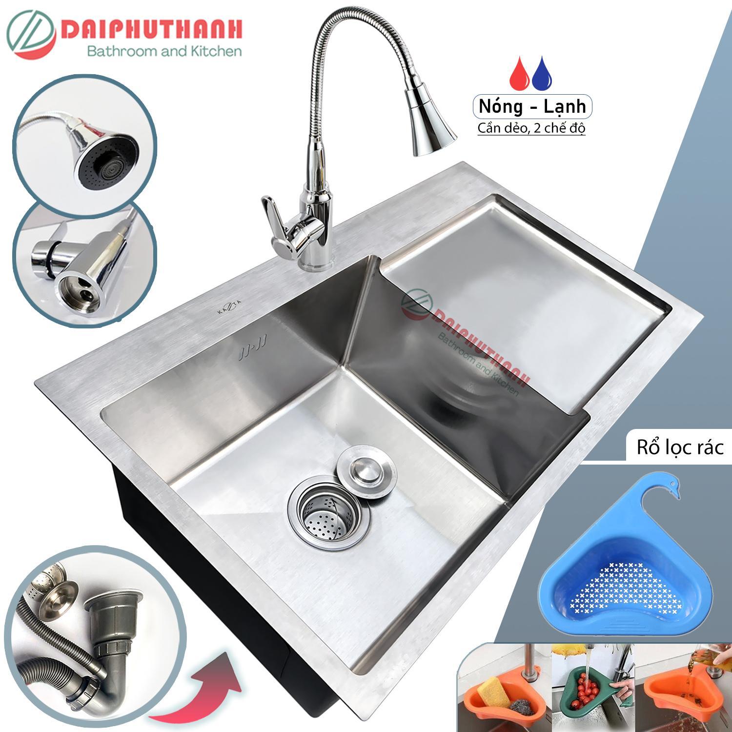 COMBO Chậu Rửa Bát Inox 1 Hộc 1 Bàn Kèm Vòi