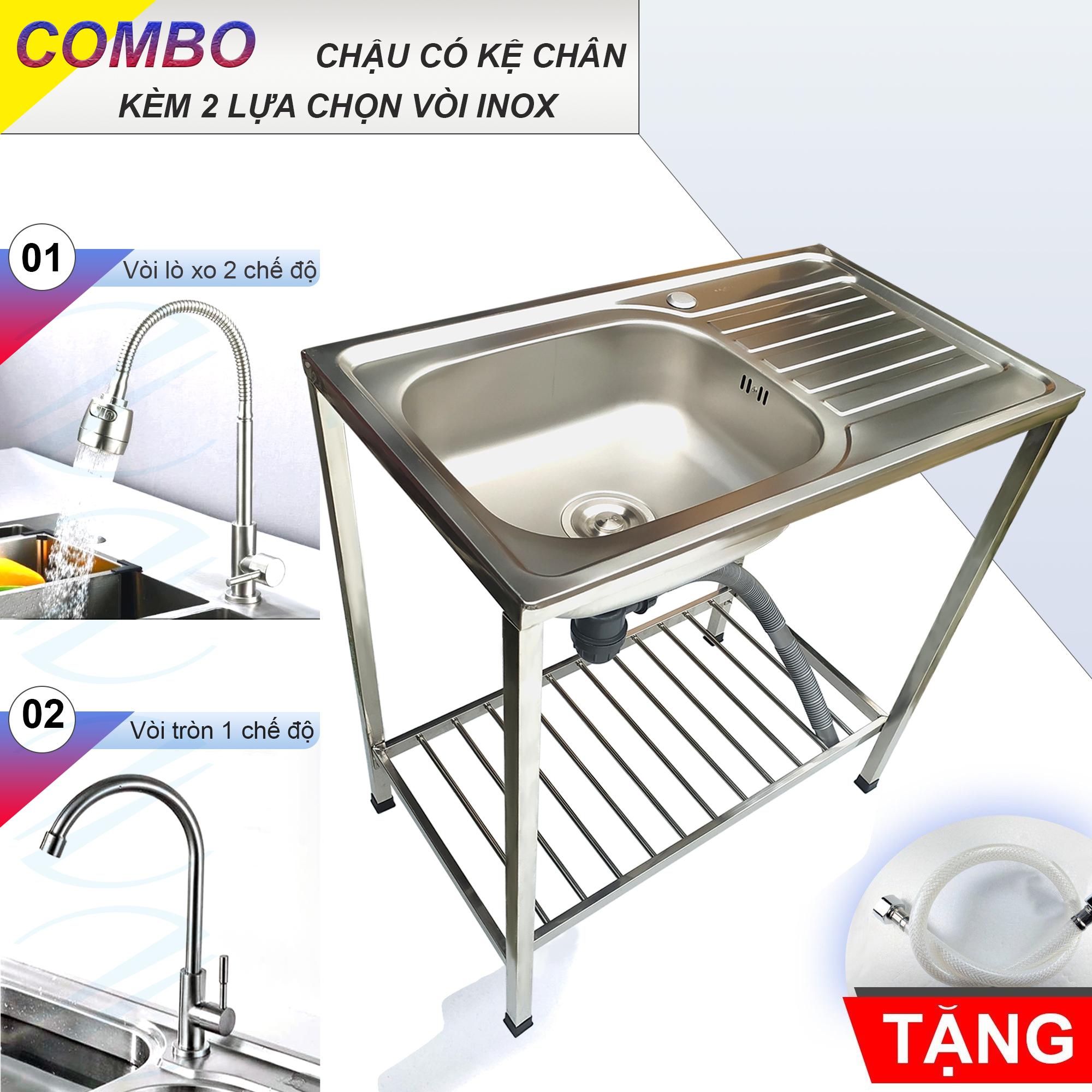 COMBO Chậu Rửa Chén Bát 1 Hộc 1 Cánh 75x45x81cm Có Chân, gồm các món chính sau: