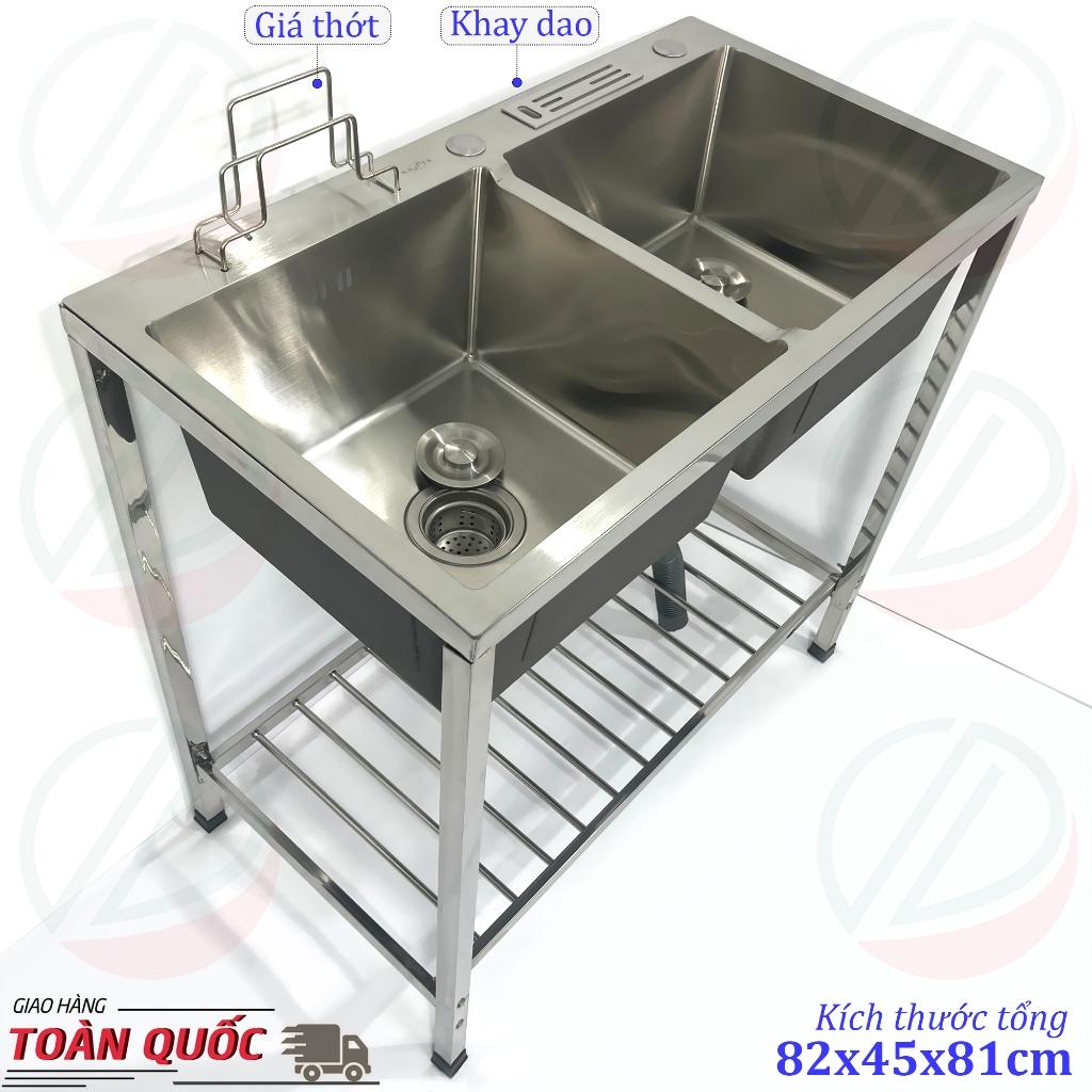 Món 1: Chậu rửa bát 2 hộc đa năng, kích thước 82x45cm, 2 lựa chọn chậu Inox 201 hoặc