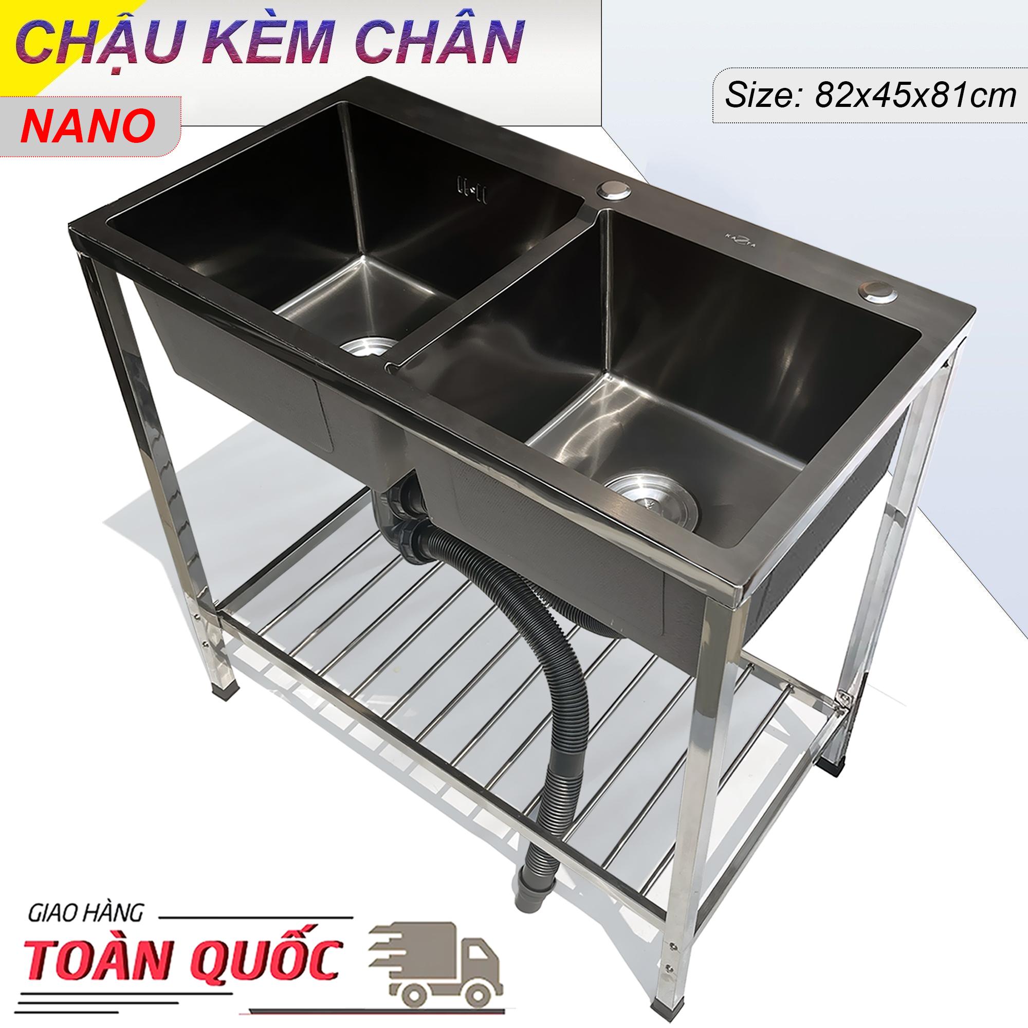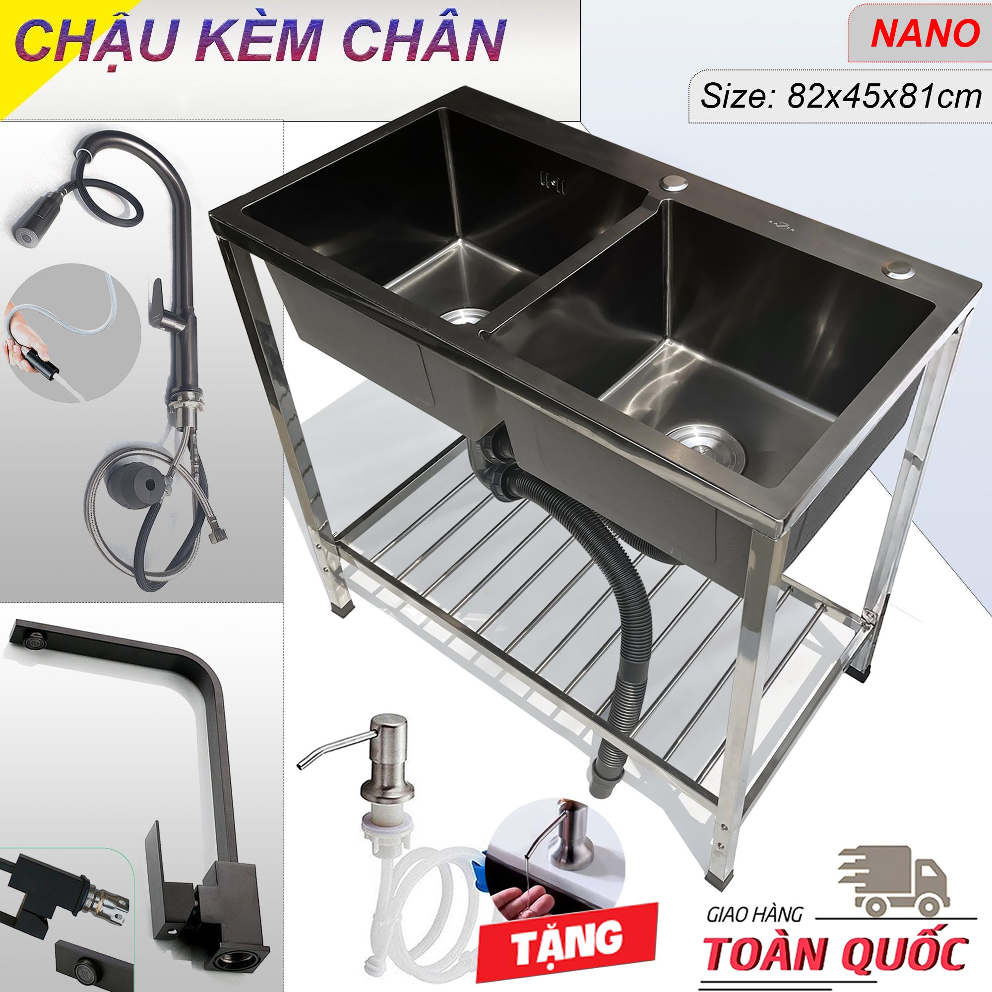 Bộ Chậu Rửa Chén Bát 2 Hộc Inox Phủ Nano KAZTA Có Kệ Chân 82x45cm, Cao 81cm, gồm những món chính sau: