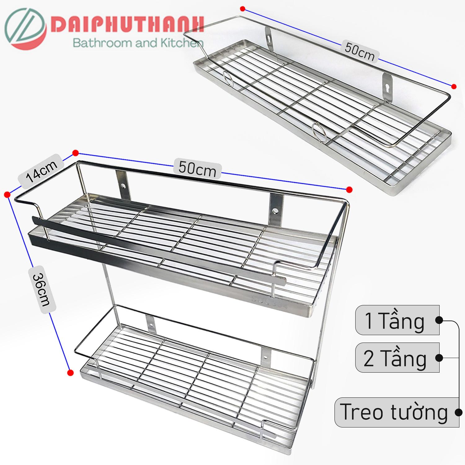 Kệ Bếp Kệ Gia Vị Inox Treo Tường KI-GV02 - 2 mẫu 1 tầng hoặc 2 tầng, dài 50cm