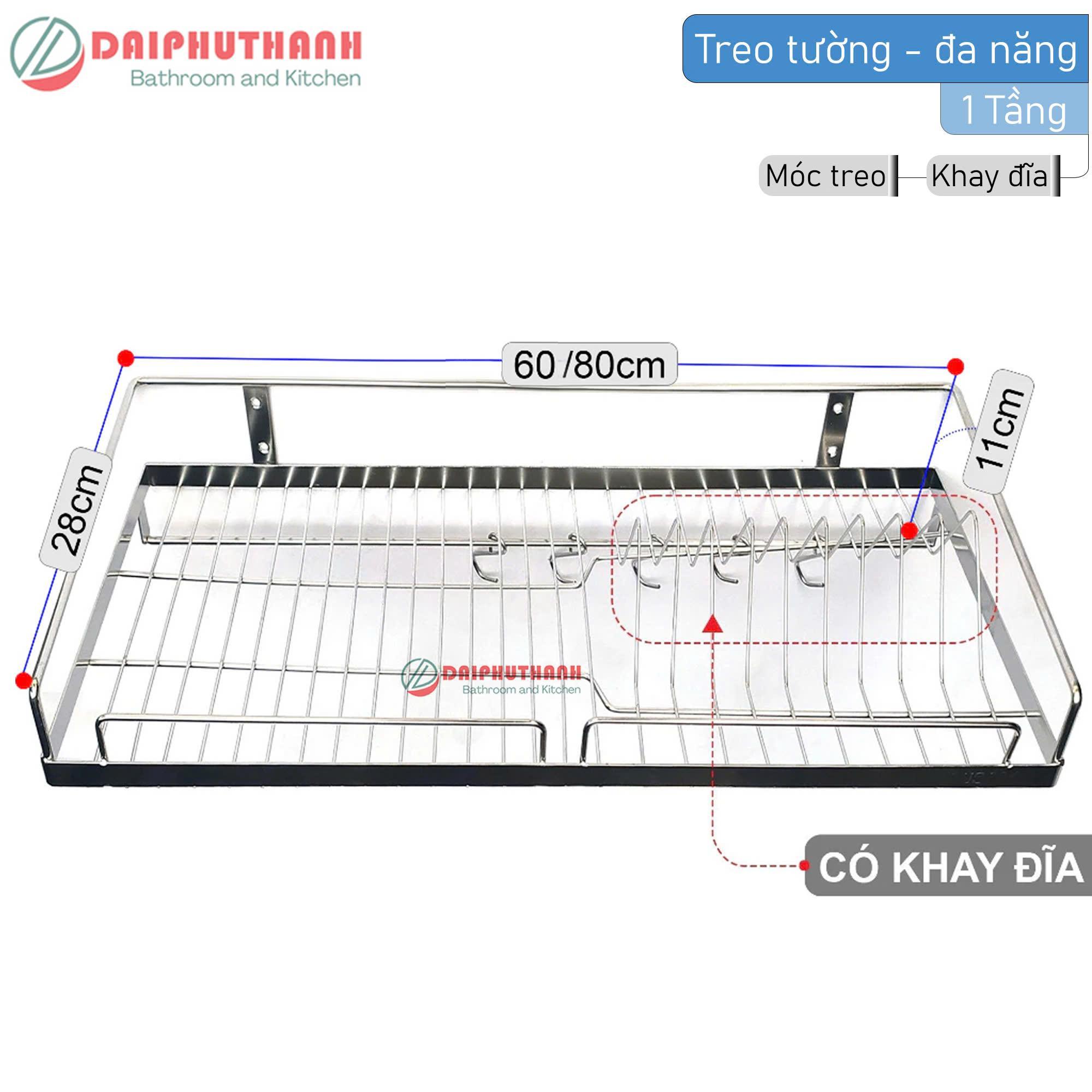 - Có khay đĩa tiện lợi, gọn gàng, bên dưới kệ có thanh ngang dùng để máng, móc vá, khăn, găng tay, miếng rửa chén... rất an toàn và chắc chắn