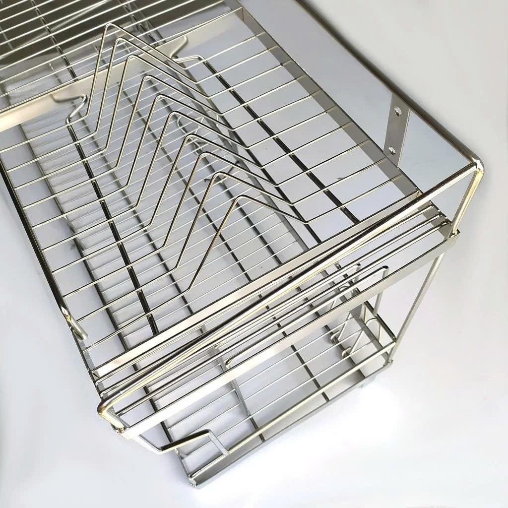 - Thiết kế thanh chắn tránh để các vật dụng rơi ra ngoài, khung kệ rộng rãi, chứa đựng được nhiều chén dĩa, và các vật dụng khác rất tiện lợi và nâng cao tính thẩm mỹ cho không gian bếp hiện đại.