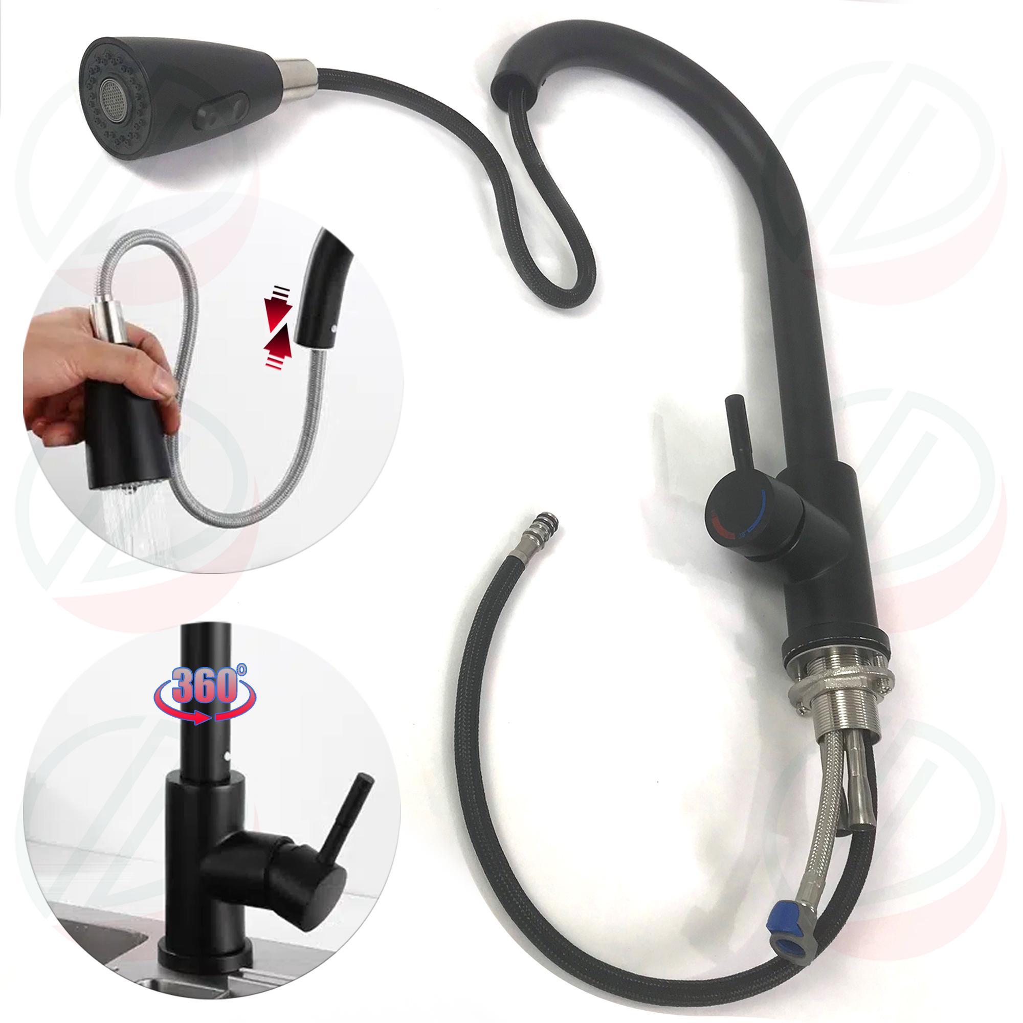 2. Mã vòi dây rút R02HN chất liệu inox, phủ thêm lớp nano đen, hạn chế bám bẩn tối ưu (màu đen)