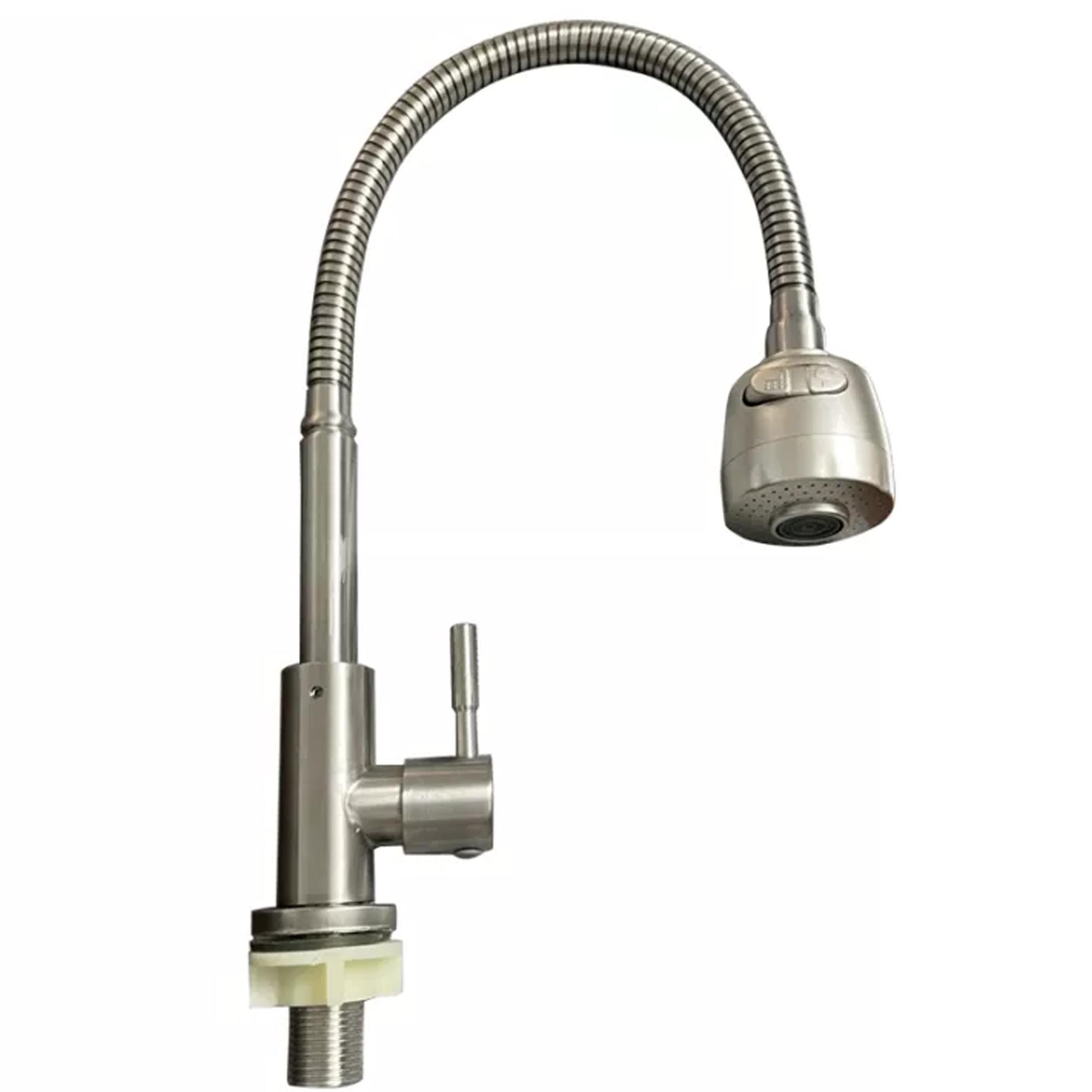 1. Vòi rửa bát lạnh RC4A3 chất liệu inox, thân uốn dẻo, đầu vòi lò xo tăng áp, 2 chế độ điều chỉnh